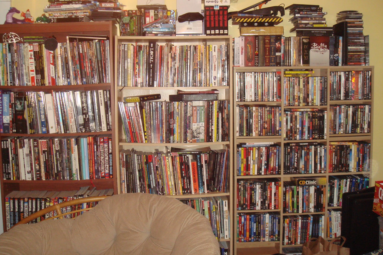 Hubby is just as bad when it comes to comics and graphic novels. His collection of comic long boxes destroyed a shelving unit a short time after we moved into our current apartment. The thunderous crash woke us both out of a dead sleep. We’re lucky it didn’t kill a cat.
