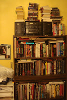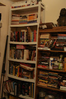 The collection at home is mostly fiction-based with a heavy focus on paranormal/ fantasy and young adult. The number of (auto)biographies are growing due to my interest in the tolls that the music industry takes on the average bear.