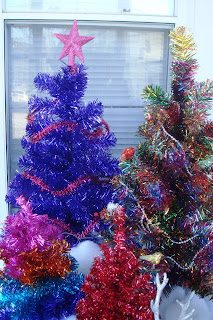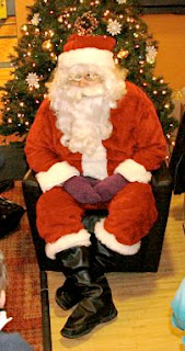 All non-Santa photos are my tacky Christmas display. Hubby is playing Santa in the photo from last year’s holiday party. I’m a fan of the purple mittens that Santa is sporting.