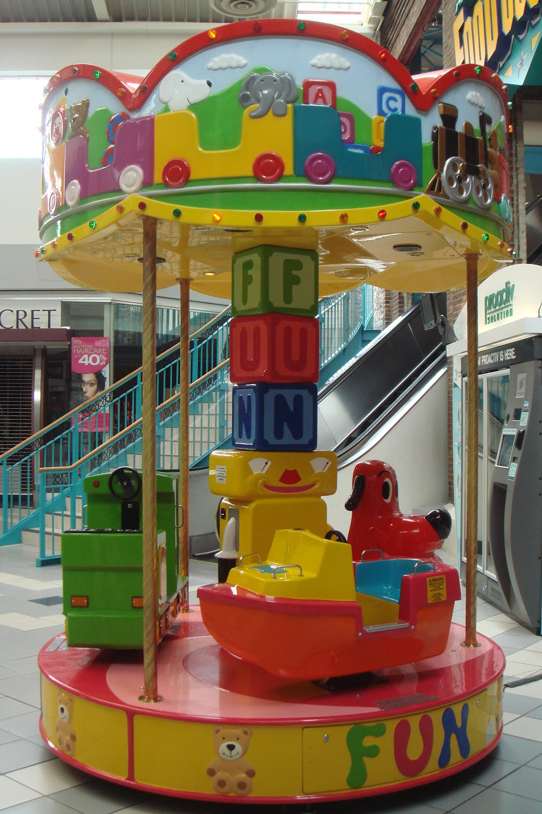 In the mall where you can find Speed Boat Tigger, you can also find this Technicolor carousel. At first glance, it seems harmless. In fact, it tell you that it’s FUN.