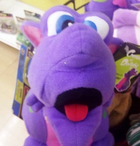 Meet Shoester, the bizarre purple monster thing I found in the magazine aisle. He looks like a whimsical Barney on crack****. His label tells me he’s a “creature of delight,” something I’d rather not think about.