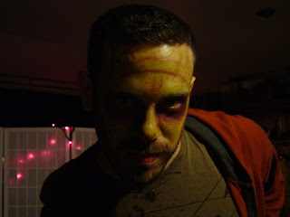 So today, I’d like to share with you one of the ways I started celebrating the season. I recently attended a ‘Zombie Tea Party’ at a friends house. What is a Zombie Tea Party? It’s a party where guests get all decked out in their finest zombie rags and blood, look for brains, and have fun! While I didn’t turn myself into a zombie (I decided to be the lone survivor, a zombie hunter of sorts), I did do the make up for a couple of people at the party (pictured below), which turned out to be great fun. I didn’t end up drinking any tea, but there was deliciously spiced rum cider, and an apocalyptic photo shoot that followed–