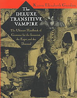 My absolute favorite grammar guide was The Deluxe Transitive Vampire. The above mentioned Mrs. Schmidt used to photocopy pages from her edition to serve as examples in class. As the title might suggest, all the sentence and grammar examples in this text book involve vampires, murderers, werewolves, and other such dark characters. Some sentence examples may not have been entirely….  appropriate for ten year olds, but they illustrated the important grammar lessons we needed to learn. And I find it as no coincidence that this book was published in the year I was born.